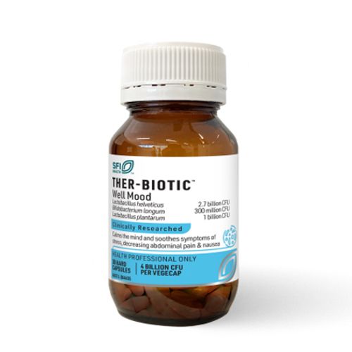 THER-BIOTIC Well Mood (previously Flordis Well Mood) is an evidence-based probiotic formula clinically researched to support healthy mood. It contains a combination of three specific probiotic strains shown to help reduce the symptoms of mild anxiety while maintaining healthy emotional balance.