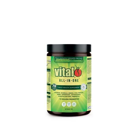 The Vital All-In-One formula is an easily absorbed, carefully balanced powder blend of essential nutrients that have been extracted from natural dense vegetables and fruits plus the addition of probiotics, herbs, vitamins and minerals.