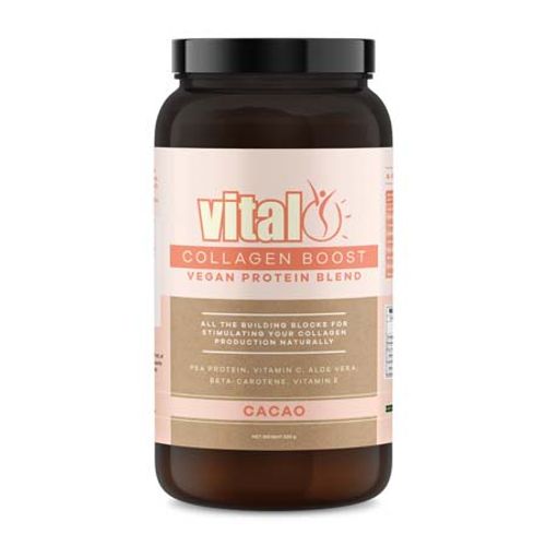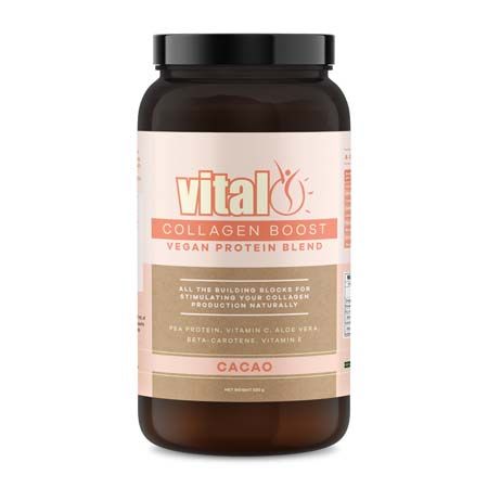The Vital Collagen Boost Vegan Protein Blend combines the highest quality European pea protein with a premium blend of ingredients to help boost collagen production naturally.