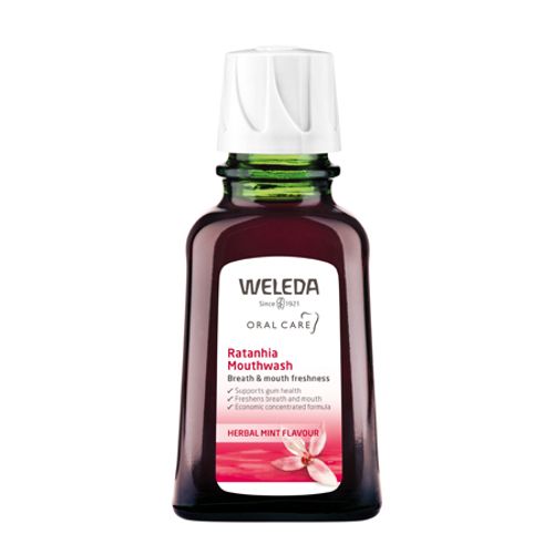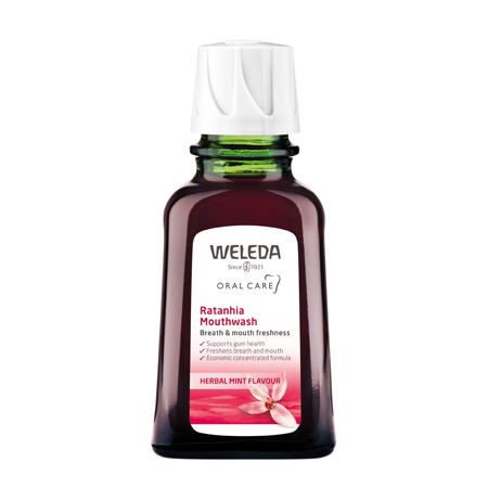 A mouth that's out of balance means sore and bleeding gums, nasty tastes and bad breath. Ratanhia roots, gathered from organic producers in the Andes of Peru, are blended with precious myrrh to tone, strengthen and tighten the gums and to prevent irritation. Natural essential oils of sage, eucalyptus and peppermint deliver lasting freshness. Rinse and spit, and get your breath back.