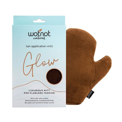 Wotnot's tanning mitt is a luxurious, velvety soft glove that protects hands from staining and helps to blend and buff Wotnot tanning products for a flawless, streak-free, salon quality finish.